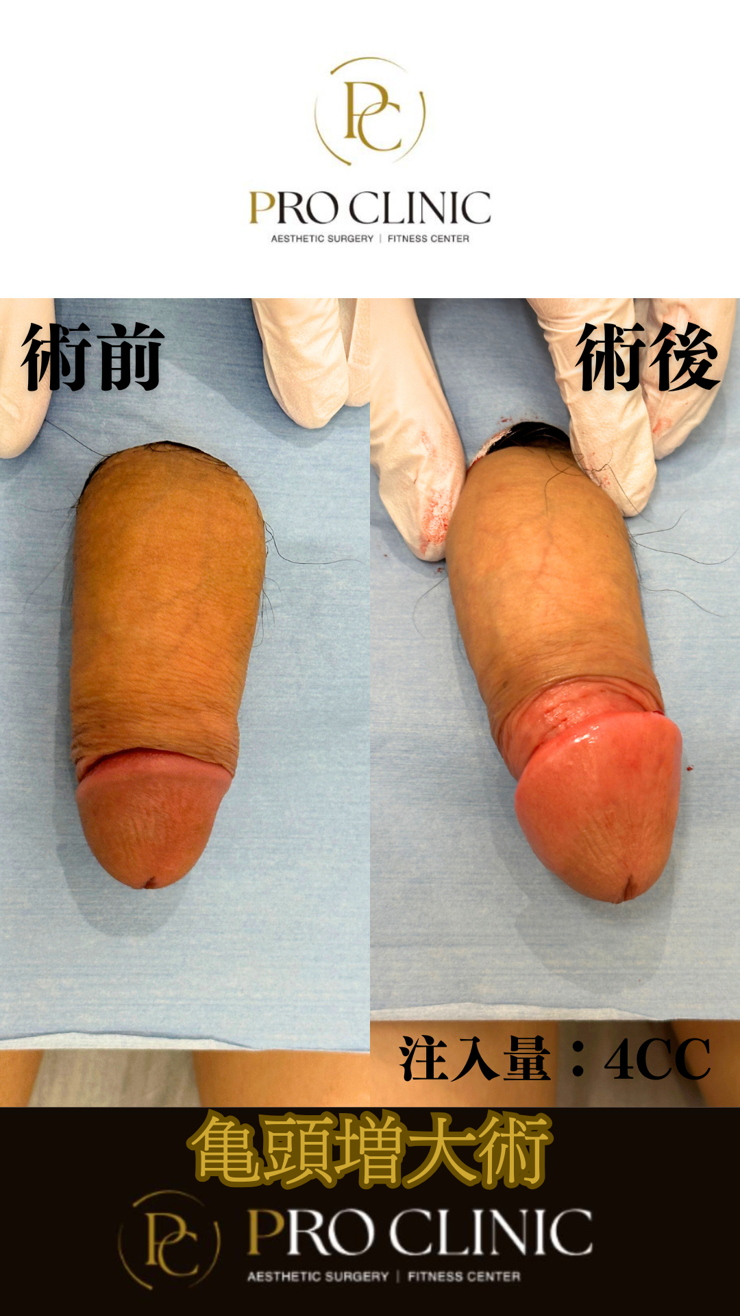 先細り気味だった亀頭がヒアルロン酸PROの効果で逞しく変化!理想のバランスを実現し、患者様も大満足!