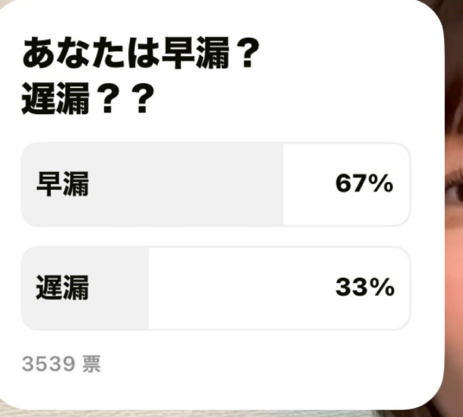 今回のアンケートでは、YouTubeライブのリスナー3,539名を対象に「早漏か、それとも遅漏か」という、非常にデリケートかつ切実なテーマについて回答をいただきました。その結果、「日本人男性の約7割が早漏、3割が遅漏」という、現代男性のリアルな自覚症状が浮き彫りとなりました。