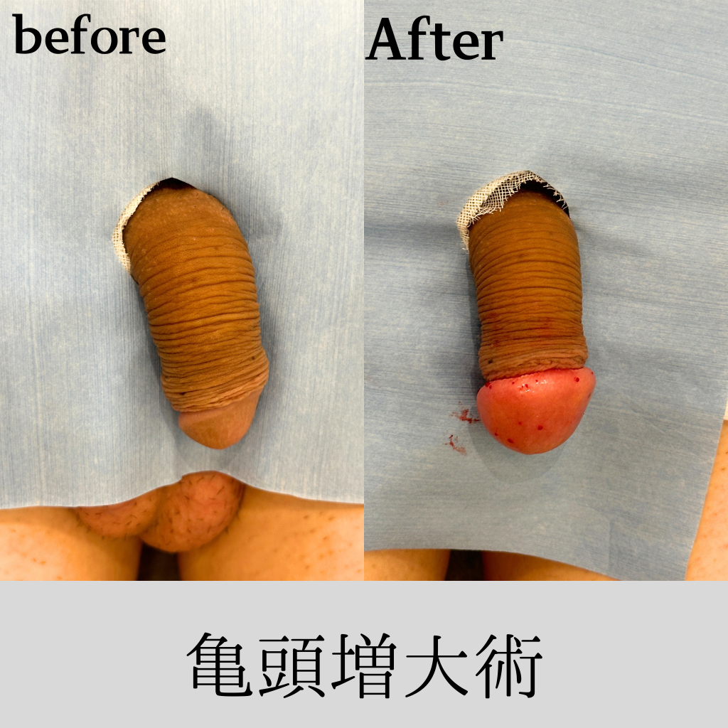 施術後は、明らかに亀頭サイズが大きくなりました。加えて、ヒアルロン酸注入で早漏改善にもなります。パートナーさんの反応も楽しみですね!また、包茎治療も検討中とのことでぜひまたご用命くださいませ。この度も患者様のお悩みを解消する手助けができて、本当に嬉しいです。もし他に気になることがあれば、ぜひ当院へご相談ください。