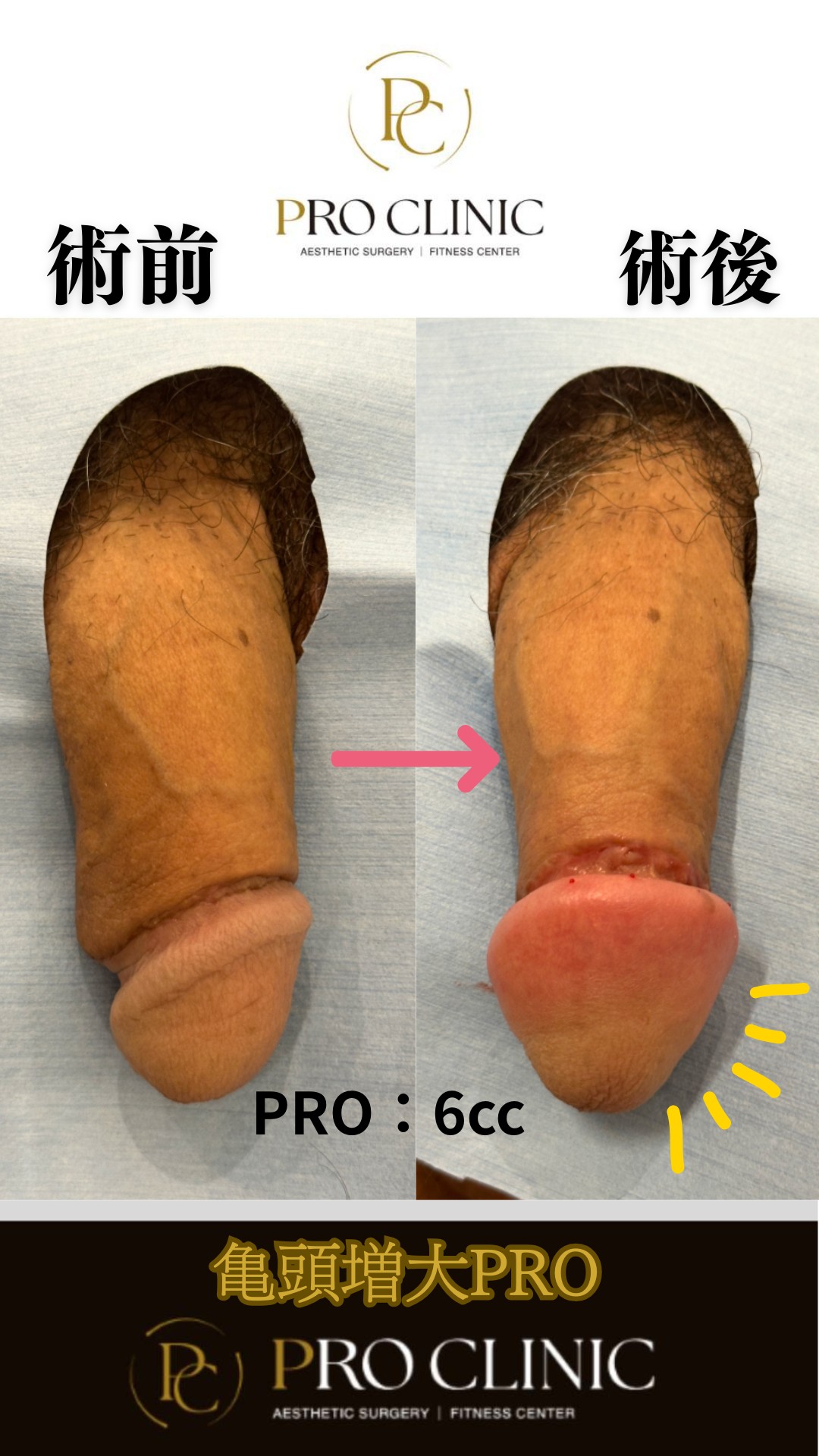 患者様も「かなり大きくなりましたね」とご満足いただき、6cc注入によってカリ高がより際立ち、他者の追随を許さない亀頭を手に入れています。