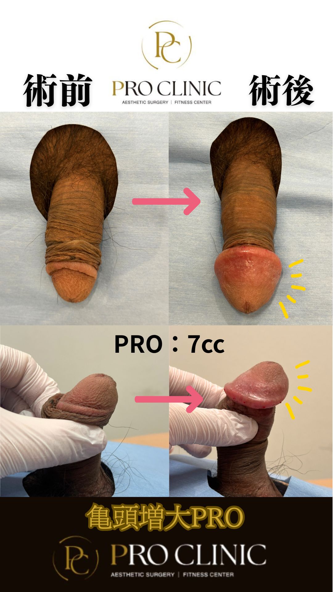 施術後は、小さくてコンプレックスだった亀頭の大きさがヒアルロン酸PRO7cc注入によって大きく、ハリのある美しくも力強い見た目に生まれ変わりました。