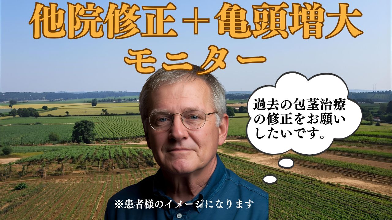 お話を伺うと、数年前に包茎手術を受けたものの、包皮のかぶりが十分に改善されず、勃起時に再び包茎のような状態になることがあったそうです。