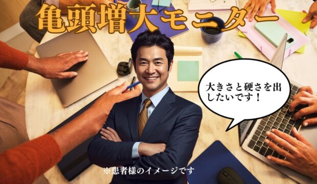 今回ご紹介する患者様は、「包茎を改善したい」とのことで来院されました。広告動画をご視聴くださり来院されました。最近性行為時の持続力が落ちてきたとのご相談もあり、また、診察で見つかった余剰包皮による亀頭の狭窄もあったので同時に施術させていただきました。