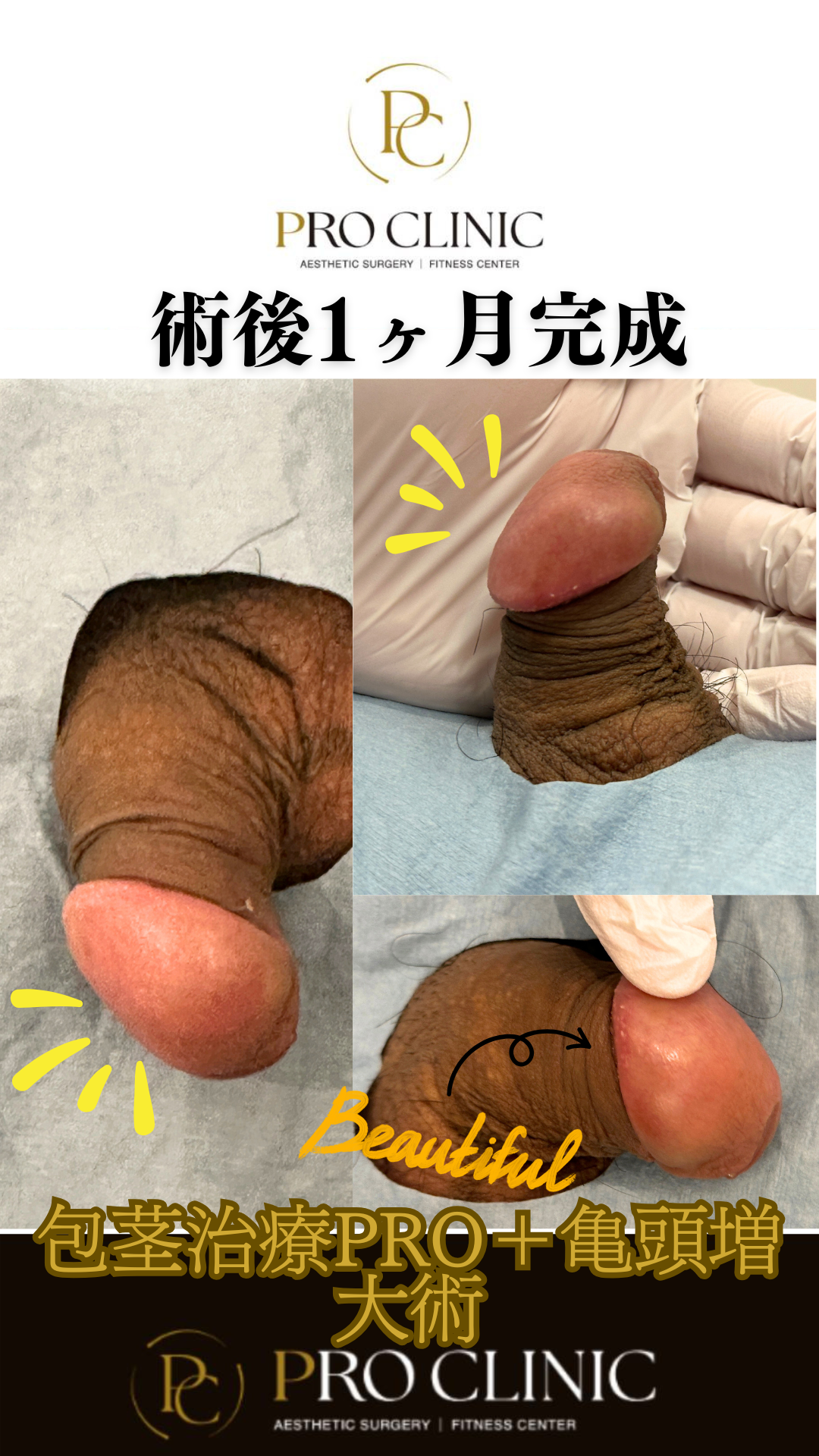 「劇的な見た目の改善!包茎治療と亀頭増大術後1ヶ月での完成症例。」