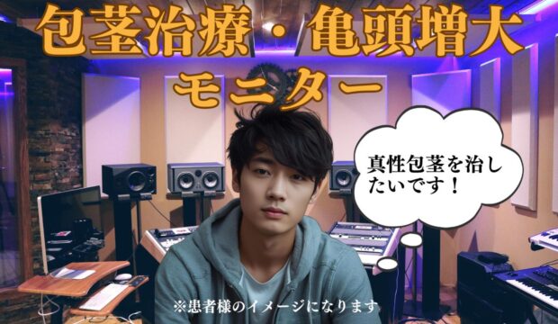 今回ご来院いただいた患者様は、ご友人とご一緒に包茎治療のご相談にいらっしゃいました。以前よりご自身のペニスのサイズに関して強いコンプレックスを抱いておられ、特に人気YouTuber・ぷろたんさんの体験動画をご覧になったことがきっかけとなり、思い切って治療を決意されたとのことです。
