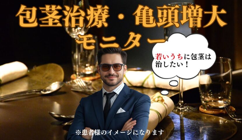 今回ご来院いただいた患者様は、先日当院で包茎治療された方のご友人で、その方からおすすめされて包茎治療の目的でお越しくださいました。元々は若い頃(20代)から包茎自体は気になっていたようですが、お仕事が多忙でなかなか治療の機会がなく、今回たまたまそのご友人に焚き付けられてご相談くださいました。