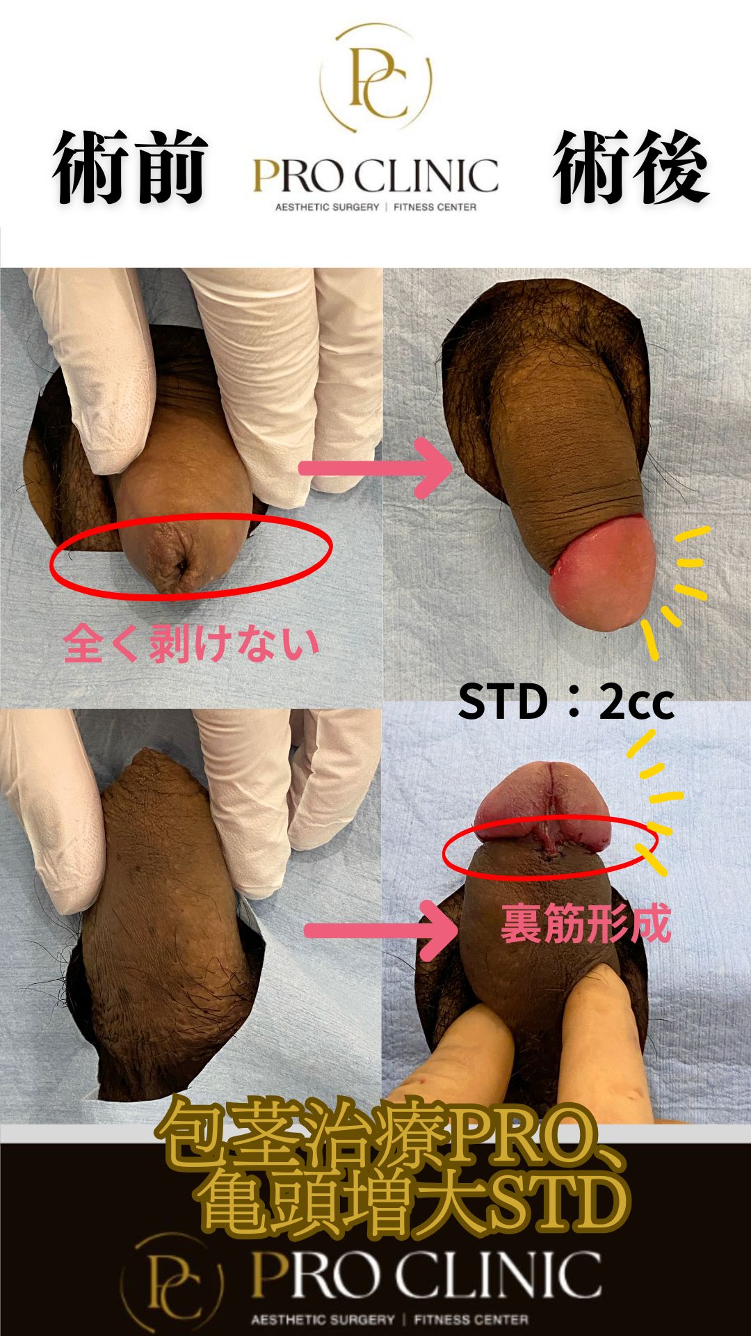 さらに、早漏傾向の改善と感度のバランス調整を目的として、ヒアルロン酸スタンダードを亀頭部へ精密に注入。見た目のボリュームアップだけでなく、性行為時の満足度向上も期待できる内容です。
