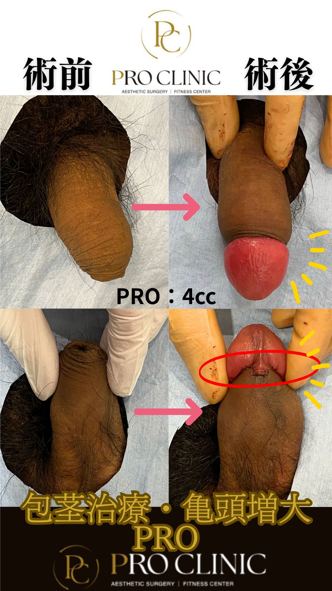 「包茎治療と亀頭増大を同時に実施。カントン気味の包皮を解除し、ヒアルロン酸PRO注入で理想的な形とボリュームを実現。形成外科専門医による安全で審美的な仕上がり。 」