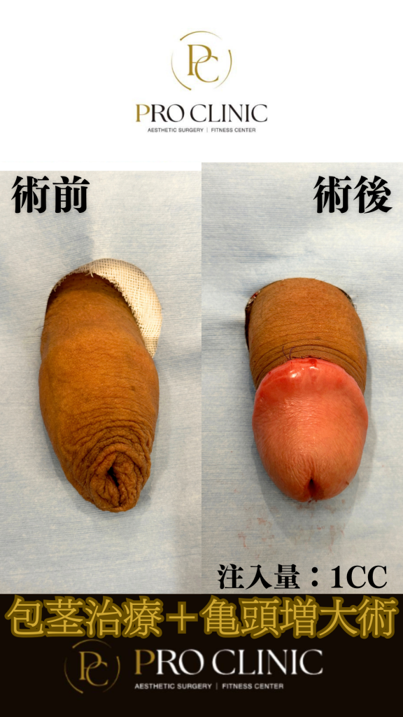 施術の説明:包皮を切除し、亀頭直下に包皮断端を審美的に縫合し、包茎の治療を行っています。また、亀頭へヒアルロン酸注入を行うことで見た目の改善を図ります。