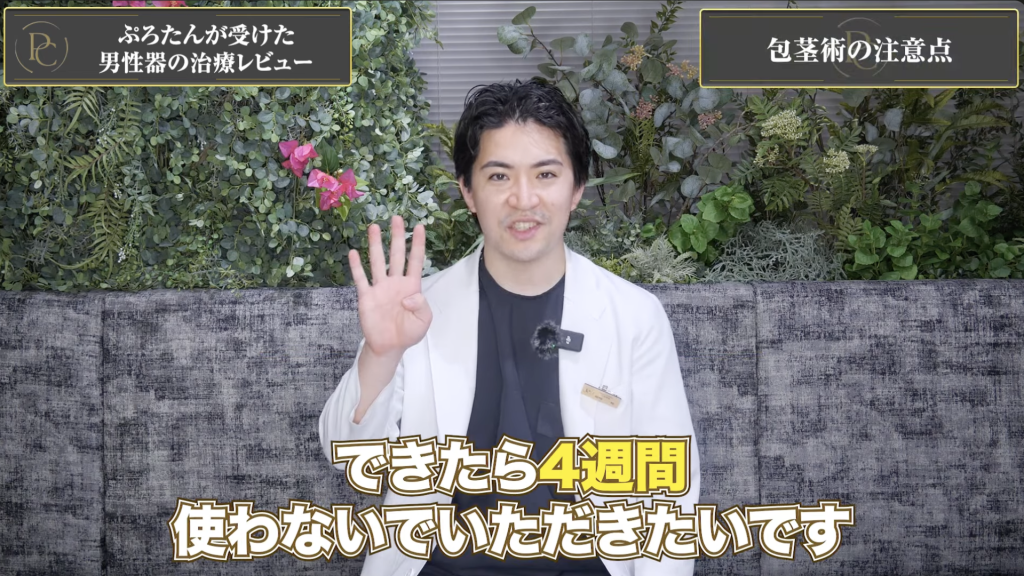 包茎手術後は、手術後の回復を促進するため、約4週間は性行為や自慰を避けていただく必要があります。切らない包茎治療でも、同様に約2週間の使用停止期間が必要です。