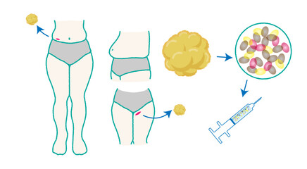 脂肪注入は、お腹や二の腕、太ももといった脂肪を減らしたい部位から脂肪吸引で採取した脂肪組織を他の部位へ注入することで、ボリュームが少ないために起こるシワやたるみの改善や、強調したい部位をより大きくすることで身体の形を整える施術です。