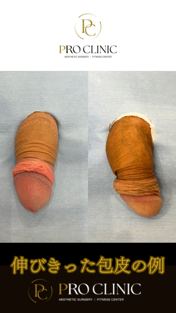 こちらは実際の症例に基づく内容ではありますが、皮オナのし過ぎから包皮がすごく伸びてしまうことで、包茎治療の難易度が上がってしまうというものです。簡潔にまとめると、伸びきった包皮を突っ張らないように切除し、美しく縫合することは難しいということです。勃起時に突っ張らないように切除するにはある程度の包皮の伸展性が必要ですが、伸びきっていると陰茎の根元の包皮が常に伸びているため、切って縫合しても既に突っ張っていることが多いです。そこから傷が治った後に勃起すると尚更突っ張ってしまい、満足度が下がる可能性があります。施術医はそれを考慮し、様々な手法で縫合の仕方や切除の仕方を工夫しますが技術力も伴って要求されますので、治療費は高くなる傾向があると言えます。クリニックによっては、診察で様々な名目で追加費用をオプションで乗せてくるかもしれません。こればかりは伸びた包皮の治療をすることにリスクがありますので、承知せざるを得ない場合が多いでしょう。